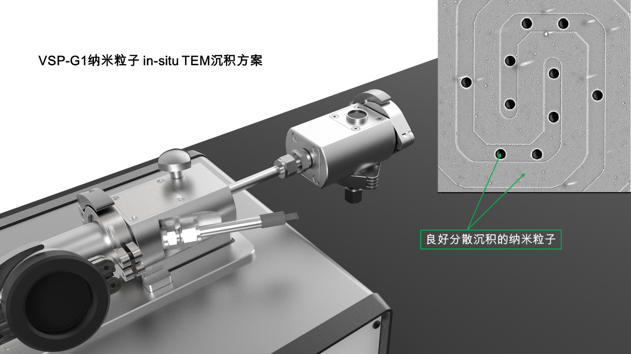 荷兰 VSParticle 公司基于纳米气溶胶沉积技术,采用火花放电技术(Spark Ablation),可在大气压条件下制备多种纳米材料,并实现多种沉积。针对 In-situ TEM 研究,VSParticle 推出桌面式制样沉积解决方案,使用 VSP-G1 纳米粒子发生器配合扩散沉积技术,可在温和的室温条件下在芯片上一步沉积模型纳米粒子。