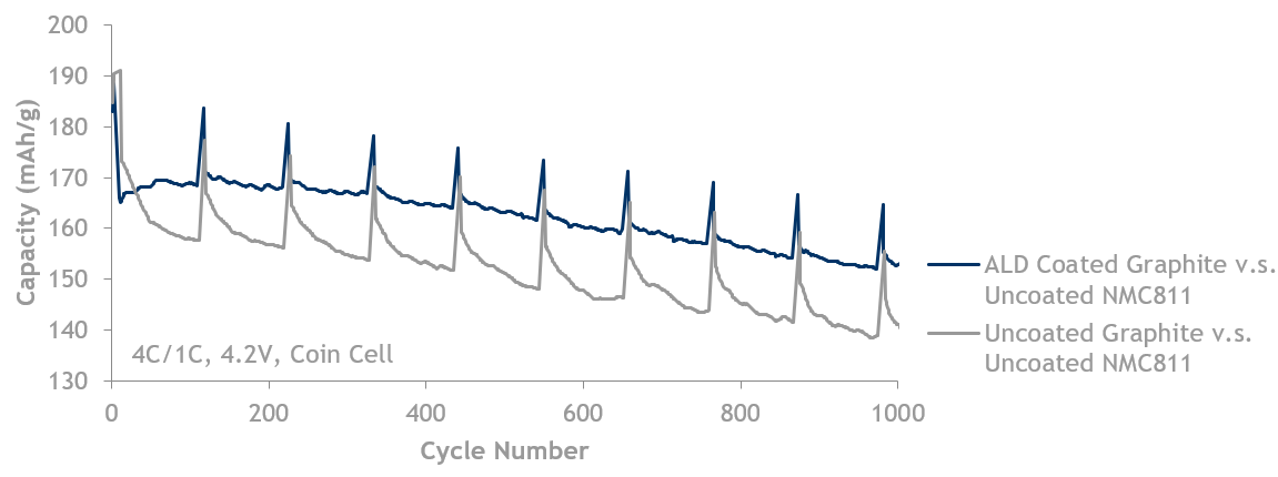 ALD包覆的石墨负极在循环后拥有更好的容量保持率