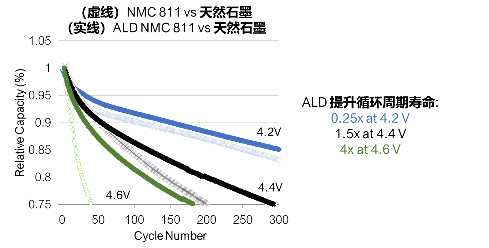 ALD包覆能显著提高高电压下的三元材料循环使用寿命