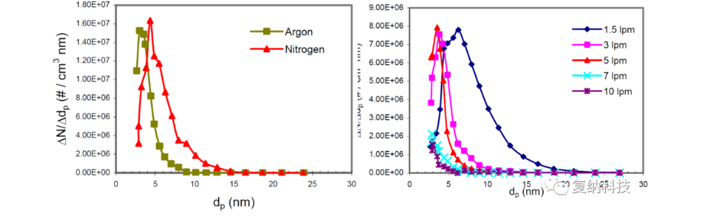图丨气体种类以及气流量对于颗粒数量和粒径的影响