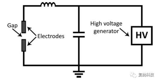 通过类似简单电阻、电容和电感(RCL)组成的电路便可以模拟实现“人工闪电”。其低功率以及脉冲放电的特性赋予其单个火花极高的能量。想象一下被闪电劈中有多可怕,就能知道持续不断的火花放电的威力。高压电源可持续地周期性地为电容充电,在达到击穿电压后,电极间隙的惰性气体会被击穿,形成明亮的放电通道。