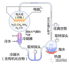 闪电是由于云层电荷积累击穿不导电的空气,形成的超强脉冲放电。其温度从摄氏一万七千度至二万八千度不等,是太阳表面温度的 3~5 倍。人类很早就注意到了这一现象,在 20 世纪处,便有科学家提出雷电是产生地球早期有机物质的原因。在 1959 年,米勒尤列通过实验模拟了实验条件下的闪电,并证明该方法确实产生了简单的氨基酸等有机物。