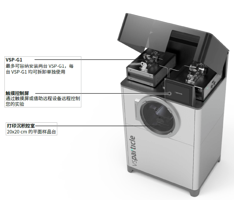因此,VSParticle 提出了一种基于气溶胶的直写方法。VSP-P1 纳米印刷沉积系统能够实现具有独特性能的无机纳米结构材料的打印直写。