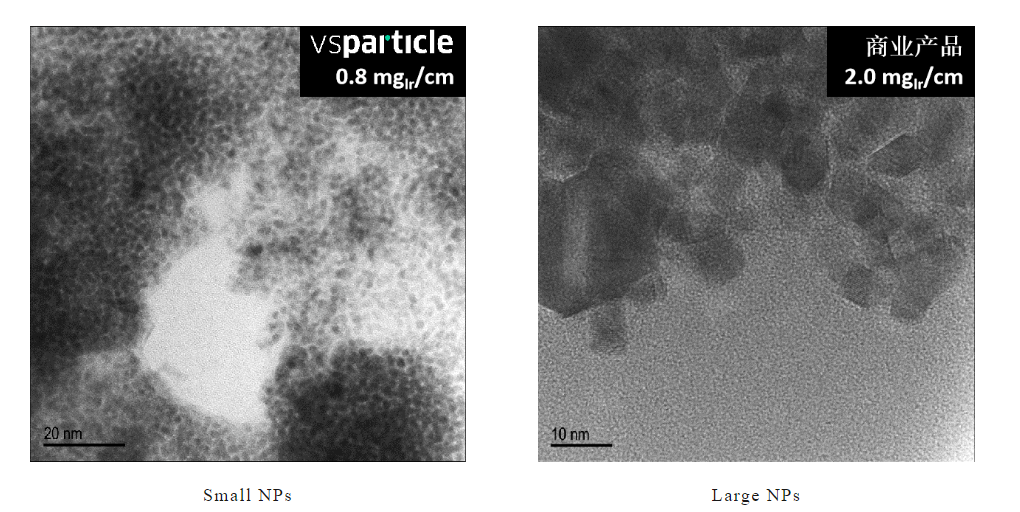 使用 VSP-P1 纳米催化剂印刷沉积系统,可以实现如 Ir, Pt 等纳米催化剂的直接生成以及直写沉积。同时,由于制取的颗粒尺寸更小,表面更干净,可有效降低催化剂使用量,节约成本。