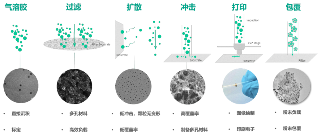 由于快速动力学,连续气相方法通常会产生由难以分开的初级颗粒(通常被认为是颗粒可以具有的最小尺寸)组成的团聚体。因此,之前的许多工作都集中在如何避免这些颗粒在沉积或固定之前发生碰撞。例如,在火花放电中,可以通过使用高空间电荷密度来减少团聚,但这可能是该技术实现可扩展性的限制因素。