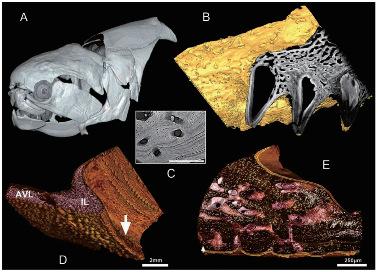 【2】盾皮鱼类 Compagopiscis 间侧片(IL)和牙齿组织学显微成像及三维虚拟重建