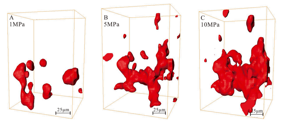 【3】不同压力条件下显示致密储层中不同的石油构造