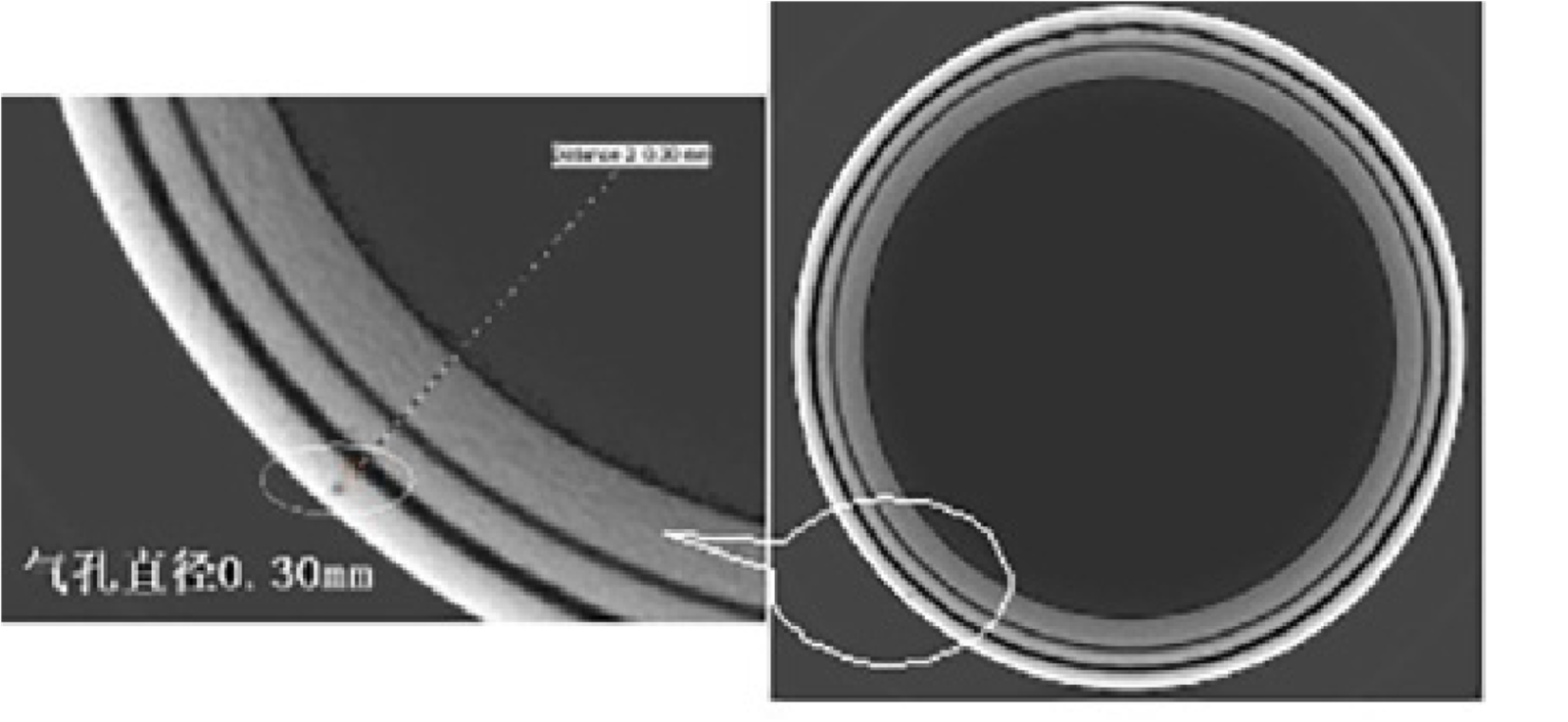 X 射线检测技术不受检测材料种类的影响,对材料中大部分缺陷,如疏松、夹杂、脱粘等均有较高的检测灵敏度。但传统工业 CT 的空间分辨率受到射线焦点、探测器和重构矩阵分辨率的限制,分辨率有限,无法分辨直径为数微米的特征。但近些年随着科技进步,逐渐发展起来的显微 CT 则可以弥补这一缺陷。