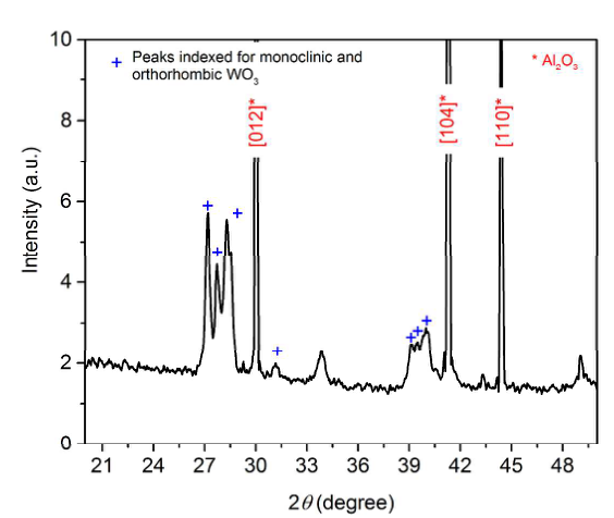 薄膜在 500°C 的空气中退火 1 小时后结晶,因此在未退火前,WOx 为非晶状态。在 XRD 测试中我们可以看到退火后明显的衍射峰。