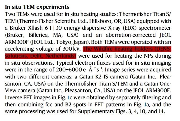 所使用的系统 - Wildfire 加热杆,Climate 气相加热杆:使用 DENS Wildfire 原位加热样品杆和 DENS Climate 原位气相加热样品杆,研究者可以观察分析样品的同时并对其进行加热和气氛处理,获得原位加热 EELS 和气相 EELS 结果,进而加深对催化剂活性位点的理解。