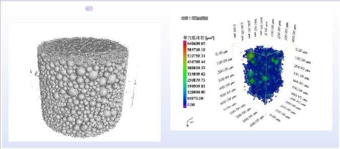 陶瓷粉末颗粒 CT 三维重建结果(左),陶瓷粉末颗粒体积三维渲染图(右)。图片源于文献