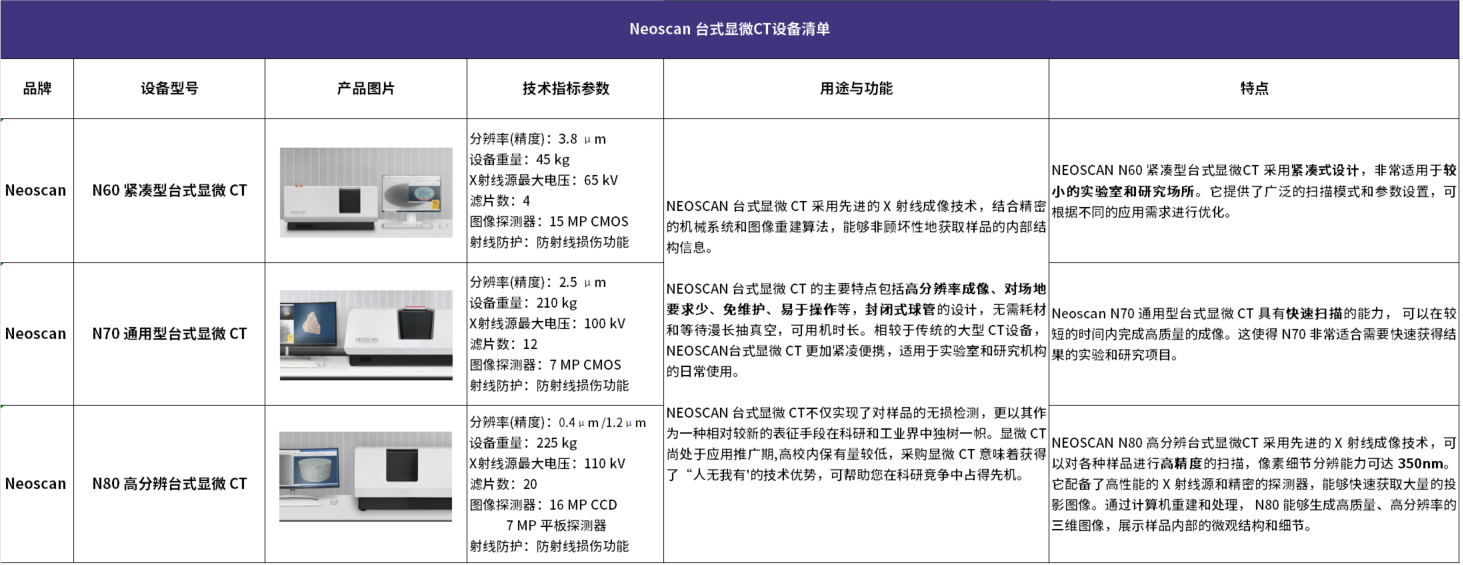NEOSCAN 台式显微 CT 系列产品在科研研究中发挥着重要作用,可用于观测材料内部三维结构与量化分析,在医学、药学、生物、农林、考古、材料、电子、地质学等领域有广泛应用。
