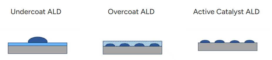 负载型催化剂材料存在比表面积大、界面不稳定以及选择性差等问题,通过 ALD 的方法可以改善界面,实现选择性支撑层、防护层以及构筑活性位点的多种功能。(详见:⾼通量粉末原⼦层沉积(PALD)技术在催化剂中的应⽤)