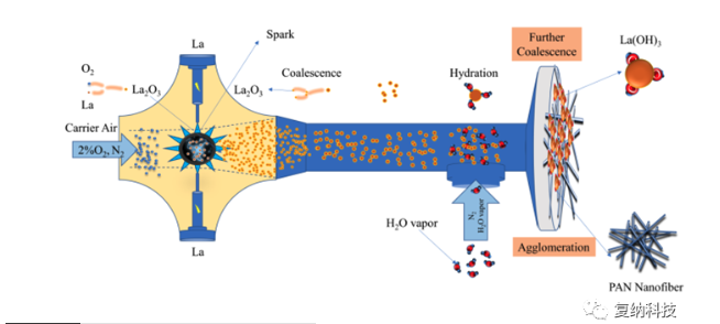 在线水合 + 火花烧蚀制备功能性,La(OH)3 负载的静电纺丝纤维