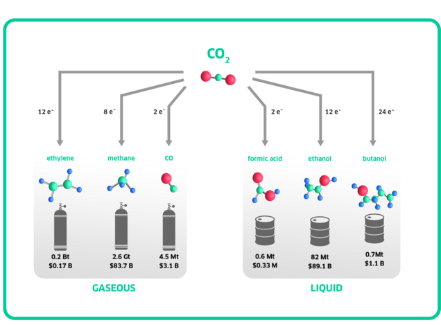 然而,纳米粒子也有缺点。尽管它们比人的头发小 1000 倍,但与二氧化碳等反应物相比,它们还是相当大的。对于 100 纳米的粒子,大约有 100,000 个二氧化碳分子可以同时吸收。这意味着,实际上,一个这样的纳米粒子实际上同时相当于约 100,000 个较小的催化剂。
