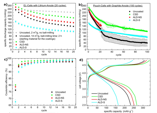 对于 NMC 基电池,氧化铝包覆可以减少Ni 的溶解,提高电池的循环寿命和安全性。