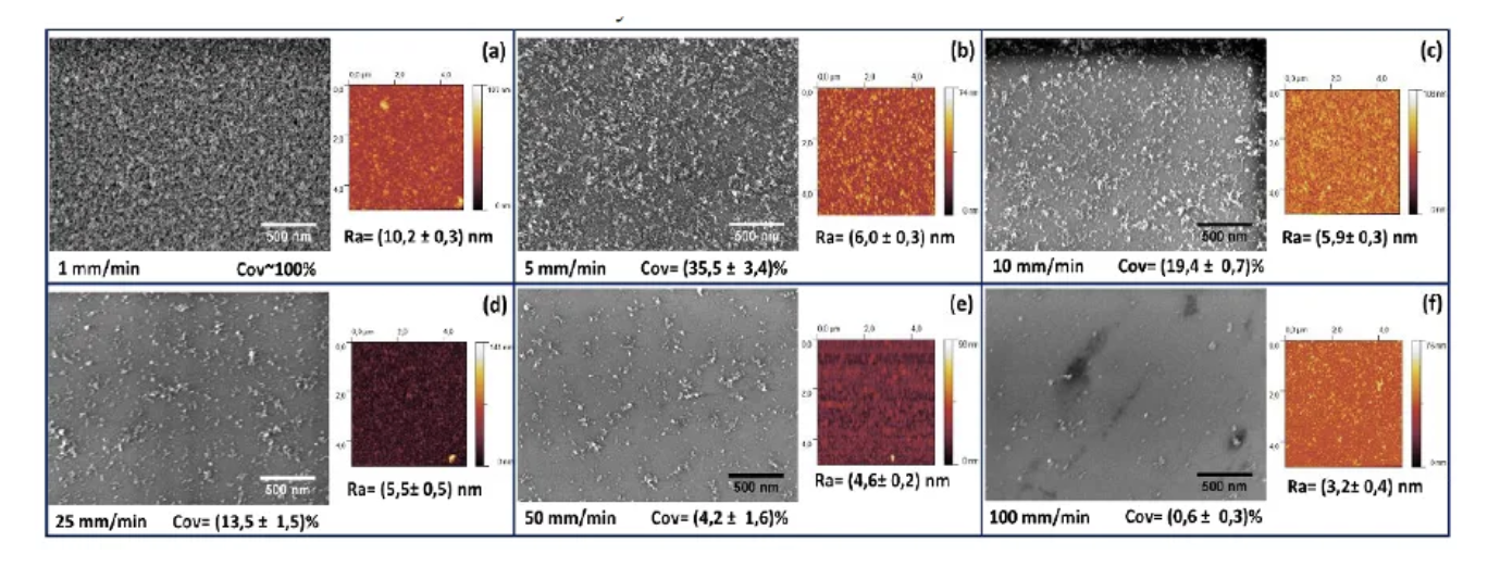 8不同 Ni 催化剂覆盖基底表面碳纳米管的生长情况,显然更慢的打印速度可以带来更多的 Ni 覆盖,从而引发碳纳米管更为密集的CVD生长[4]