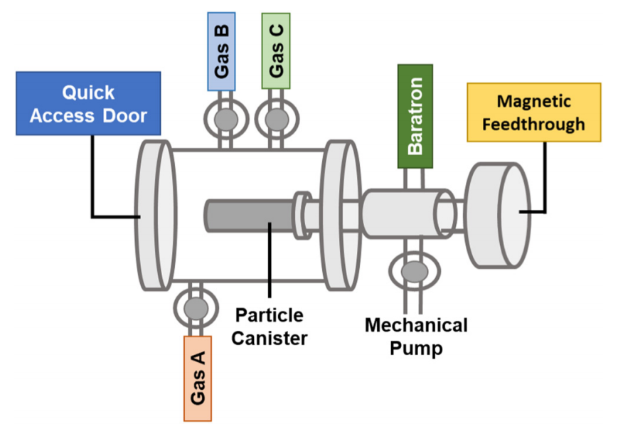 实验中使用的旋转反应器设计有助于在 ALD 和ALE 过程中确保反应物与纳米粒子表面的充分接触,避免了颗粒的团聚,从而提高了反应的均匀性和效率。