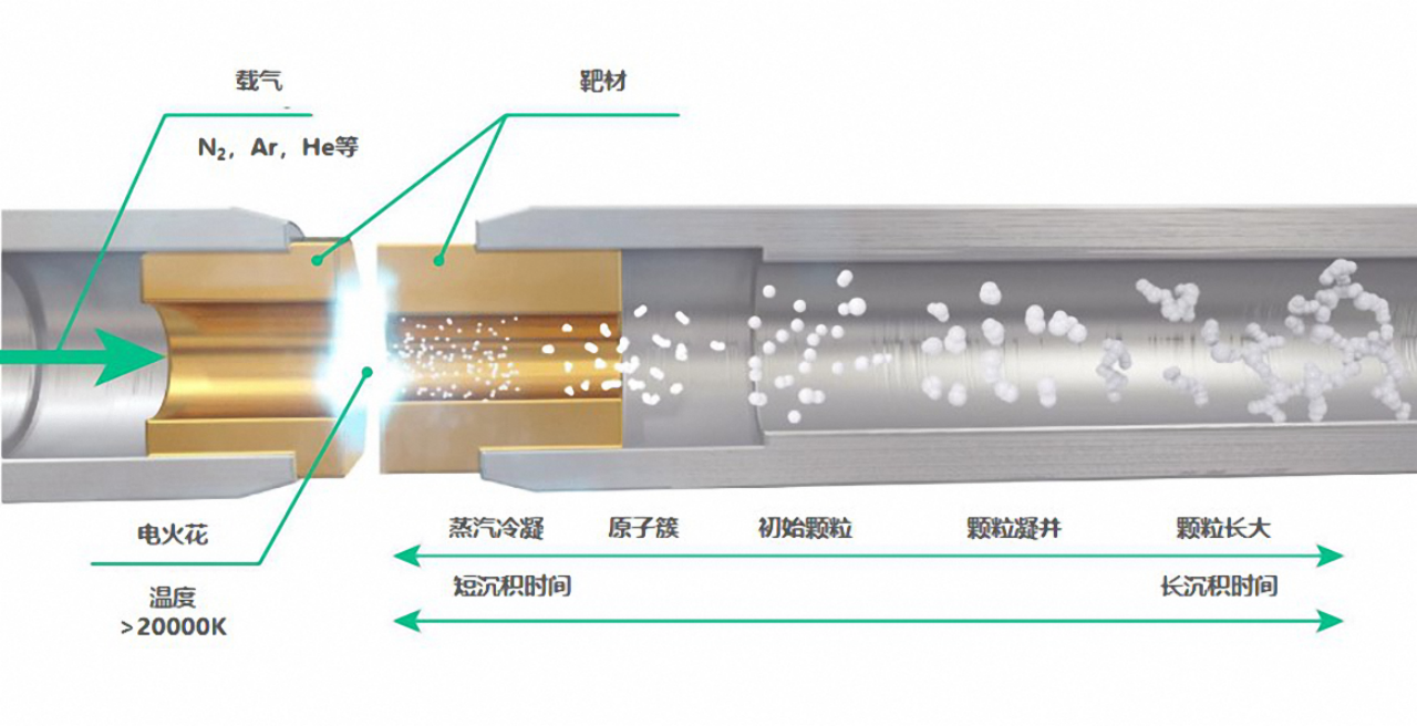 目前,通过火花放电技术生成团簇及纳米粒子的研究已经在各领域中广泛开展,本文将介绍利用该平台与其它气相沉积的联用技术的新型纳米制造平台方案。