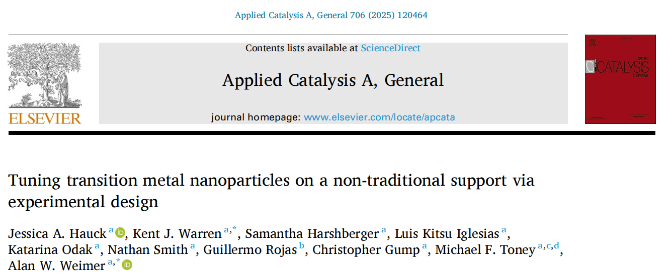 发表文章:Tuning transition metal nanoparticles on a non-traditional support via experimental design
