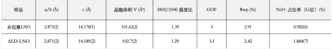 表1. 未包覆与ALD包覆粉末的XRD精修结构参数
