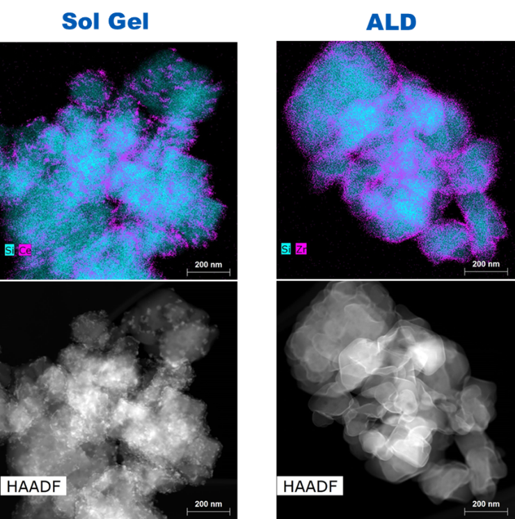 (左:溶胶凝胶法;右:ALD)