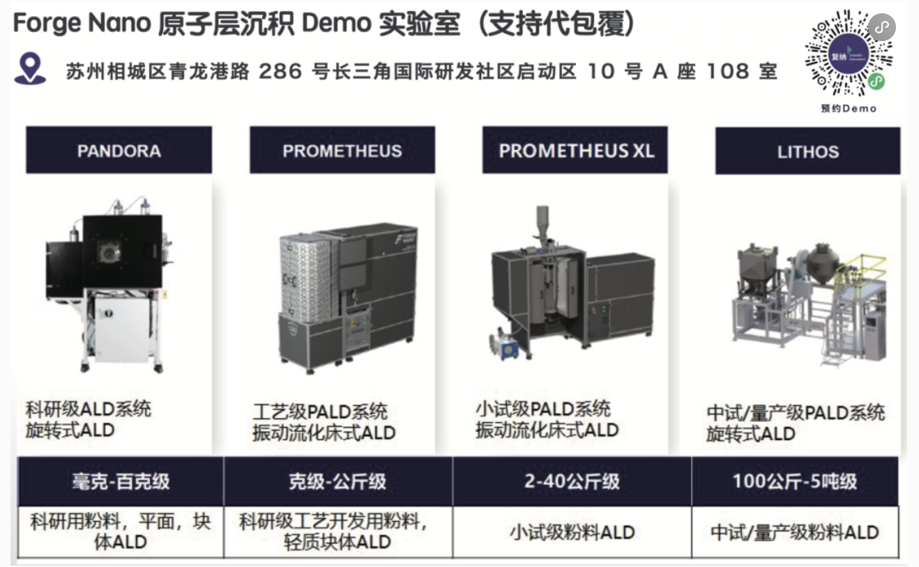 Forge Nano 采用粉末原子层沉积技术(ALD),可提供从包覆研发到工业生产的全套解决方案,包括:流化床技术、旋转床、振动床等。实现从毫克到吨级的粉末处理量,您可以轻松实现从实验室到生产的产品开发计划,广泛应用于锂电、催化、金属、制药等。