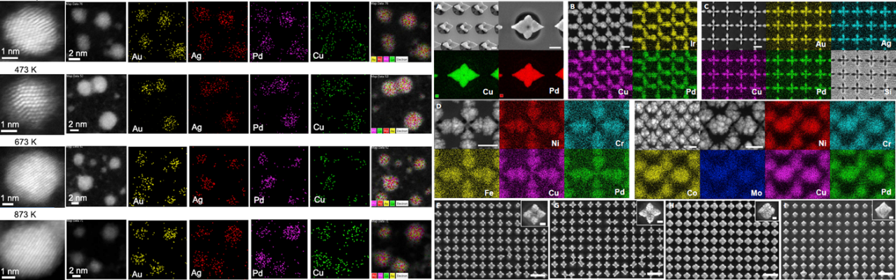 而一些更为前沿的研究,已经可以利用该方法制备高熵合金纳米粒子。如冯继成在2020年发表在Matter的文章:Unconventional Alloys Confined in Nanoparticles: Building Blocks for New Matter(https://doi.org/10.1016/j.matt.2020.07.027)。详细解释了高熵合金纳米粒子的形成机制,并创造性的利用法拉第力线进行纳米结构的打印。