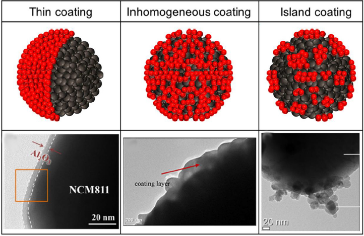 较厚的包覆涂层虽然可以提供强有力的屏障,尤其是高温稳定性,但不利于离子扩散。而岛状包覆以及不均因的包覆会在表面留下较多缺陷,并不能完全阻止电解液与材料之间的接触与反应。而目前的主流包覆技术以干法与湿法为主,很难提供均匀且厚度可控的超薄涂层。ALD技术(原子层沉积)具有出色的成膜均匀性,保形性以及精确性,从而备受瞩目(详情见:如何用ALD技术实现高质量的粉末包覆)。