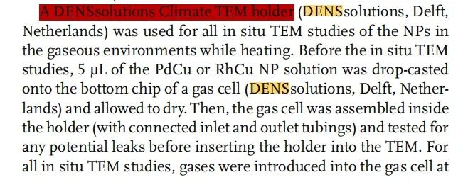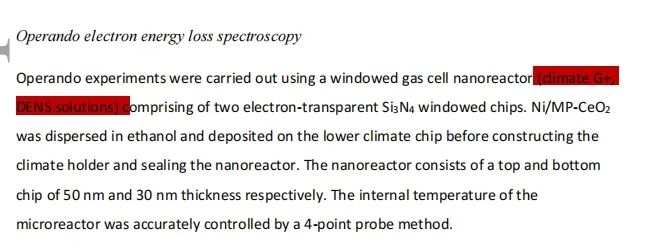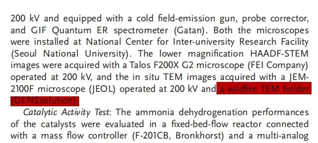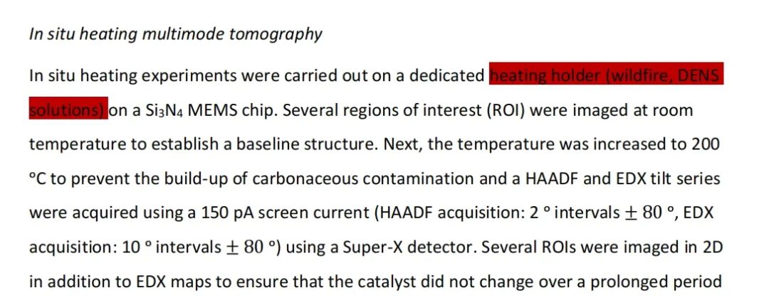 所使用的系统 - Wildfire 加热杆,Climate 气相加热杆:使用 DENS Wildfire 原位加热样品杆和 DENS Climate 原位气相加热样品杆,研究者可以观察分析样品的同时并对其进行加热和气氛处理,获得原位加热 EELS 和气相 EELS 结果,进而加深对催化剂活性位点的理解。