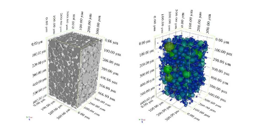 使用 NEOSCAN 台式显微 CT 扫描陶瓷材料,清晰揭示内部孔隙、裂纹,并可计算内部孔隙度,进行有效渗透率模拟。