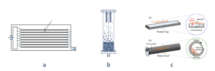 平面 ALD(a),粉末流化床(b),粉末旋转床(c)
