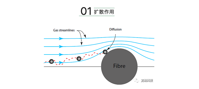 气溶胶颗粒在气体介质中会不断地做布朗运动,纤维材料有极大的概率收集偏离气流中心的小颗粒。这一方式可以收集绝大多数的超细颗粒物质,且分散性最好。