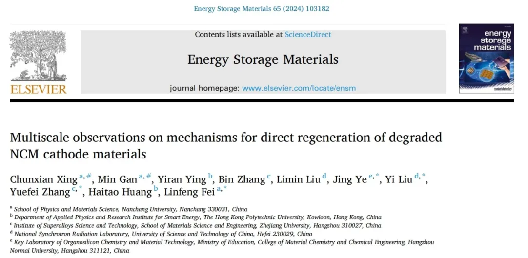 获奖论文:Multiscale observations on mechanisms for direct regeneration of degraded NCM cathode materials (对退化NCM 正极材料直接再生机制的多尺度观察)