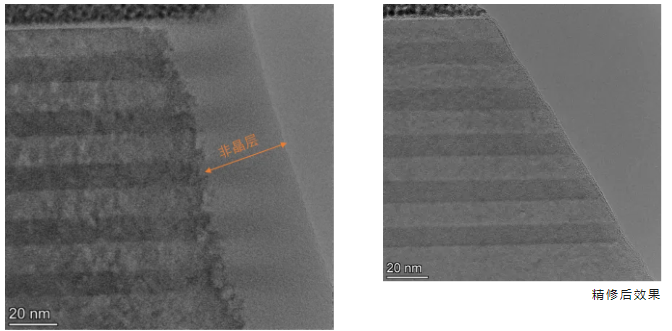 低能离子精修仪可制备离子损伤更小、非晶层更薄的 TEM 样品。
