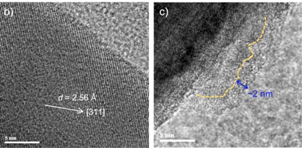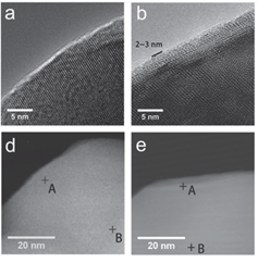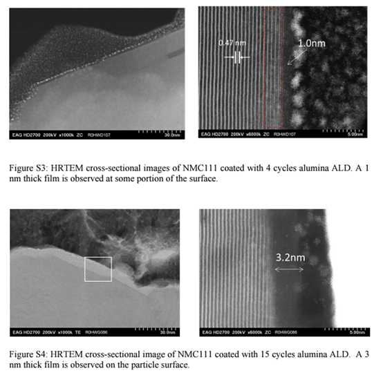 NMC 的 TEM 截面图像,分别为 ALD 4cycle,15cycle Al2O3