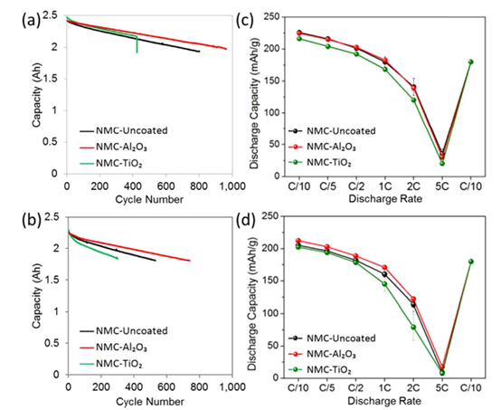 对于 NMC 基电池,氧化铝包覆可以减少Ni 的溶解,提高电池的循环寿命和安全性。