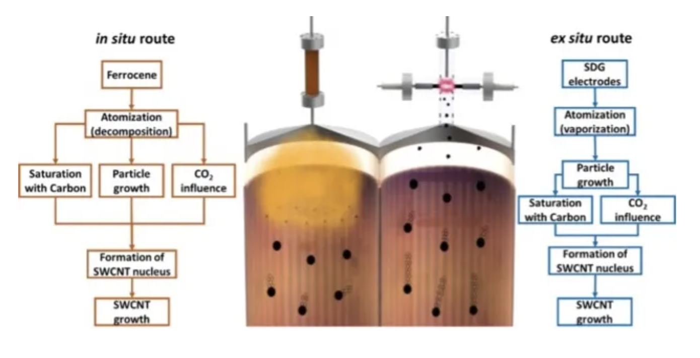 2使用火花放电的方式直接产生纳米 Fe 气溶胶作为产生 CNTs 的催化剂[2]