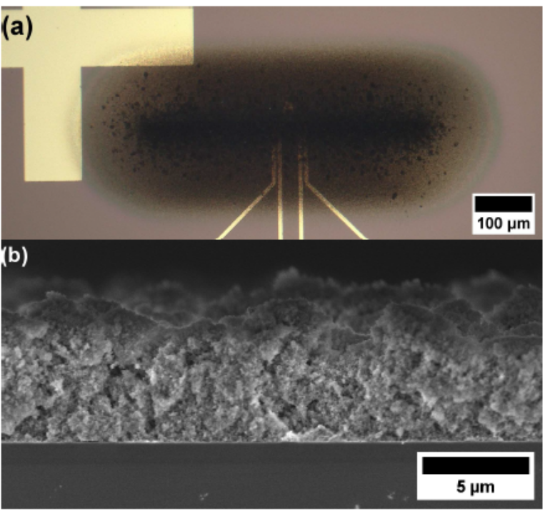 通过不同的纳米粒子发生源,进行多组分纳米多孔传感层的打印,并用于测试气体传感性能。每个发生器可独立进行靶材,功率的调控,从而获得多样化的材料组合。