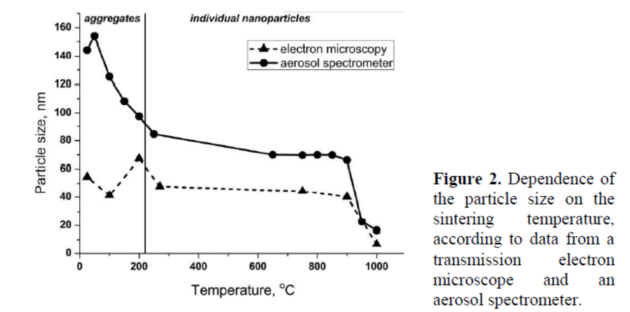 Lizunova【1】等人通过火花放电发生器合成银纳米颗粒,然后利用管式炉进行烧结。实验研究了烧结温度(25℃-1000℃)对银纳米颗粒形貌和粒径的影响,采用透射电子显微镜(TEM)和气溶胶光谱仪对颗粒进行表征。烧结温度对银纳米颗粒的形貌和粒径有显著影响。25℃-200℃时,颗粒以分形结构的聚集体为主;200℃ 以上时,形成单个球形纳米颗粒。在 200℃-900℃ 范围内,颗粒平均粒径约为 45nm 且保持相对稳定,而在 1000℃ 时,粒径显著减小至 7nm。利用管式炉可实时调控银颗粒的结构和尺寸,减少团聚,从而满足光学和医学等领域对银纳米颗粒性能的要求。
