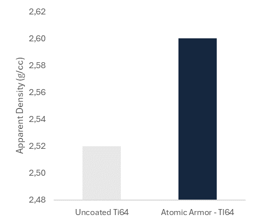 未包覆涂层的Ti64与通过 Atomic Armor™ 技术包覆涂层的Ti64的密度对比