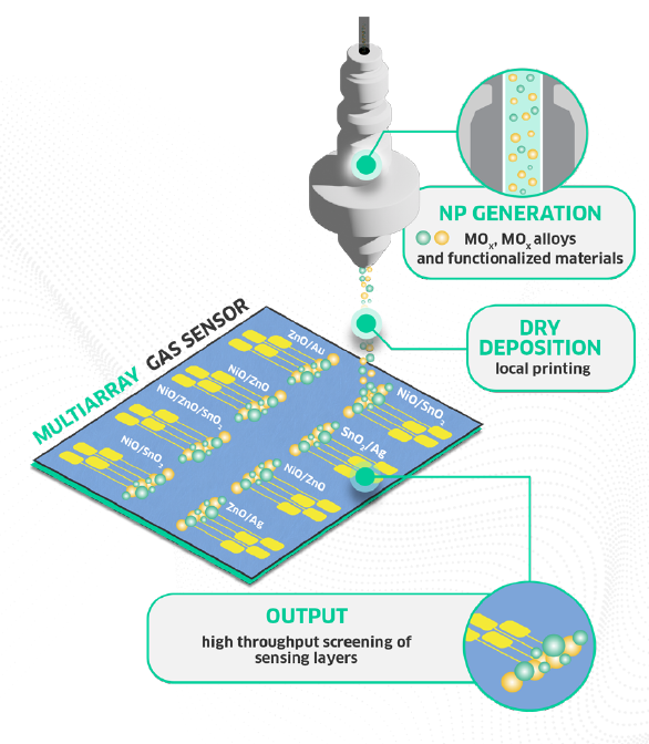 VSP-P1 纳米打印沉积系统极大地加快了 MCL 团队的实验流程。它允许研究人员快速测试大量不同种类的纳米材料及其组合,这种灵活性是其他技术所无法比拟的。Dr. Anton Köck 指出,纳米打印机的最宝贵之处在于其能够自由组合多达4种不同的材料(如铜、锡、镍和金),以及它们的任何组合。这种灵活性是传统方法(如溅射沉积)所无法实现的,从而为特定目标气体的传感器性能优化提供了宝贵的知识。