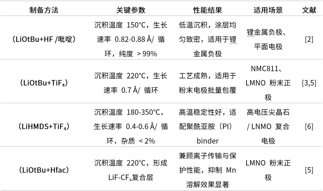 目前 LiF 涂层的原子层沉积(ALD)制备方法有多种工艺,参考如下:
