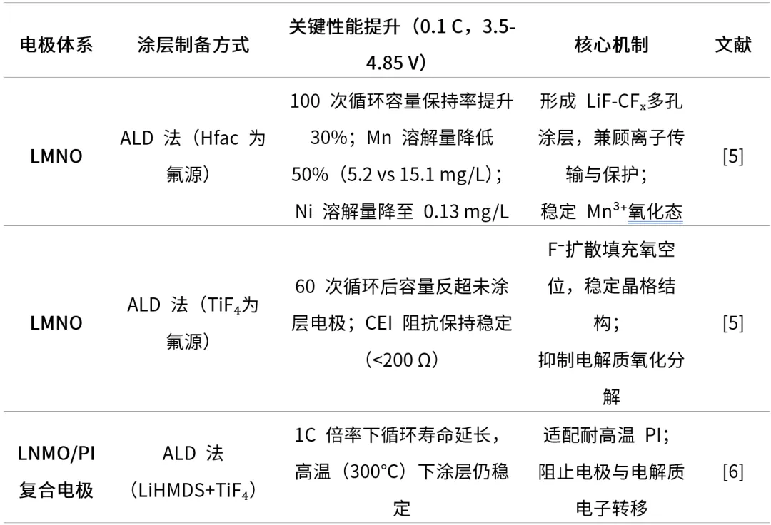 稳定性冲突:高温 ALD 沉积(>200℃)会导致 PVDF 等常用 binder 分解,影响电极结构完整性;而低温工艺虽能兼容 binder,但会降低 LiF 涂层的结晶度和致密性,削弱防护效果[3,6]。