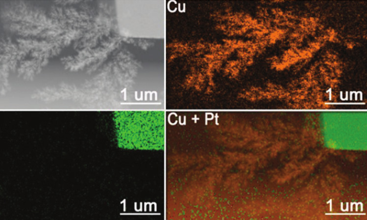 液相透射电子显微镜在材料和生命领域都有着巨大的贡献,而这主要归功于DENS的研究人员通过独创的Stream系统中的双芯片微流体通道,于此可视化金属铜晶体的电沉积过程。