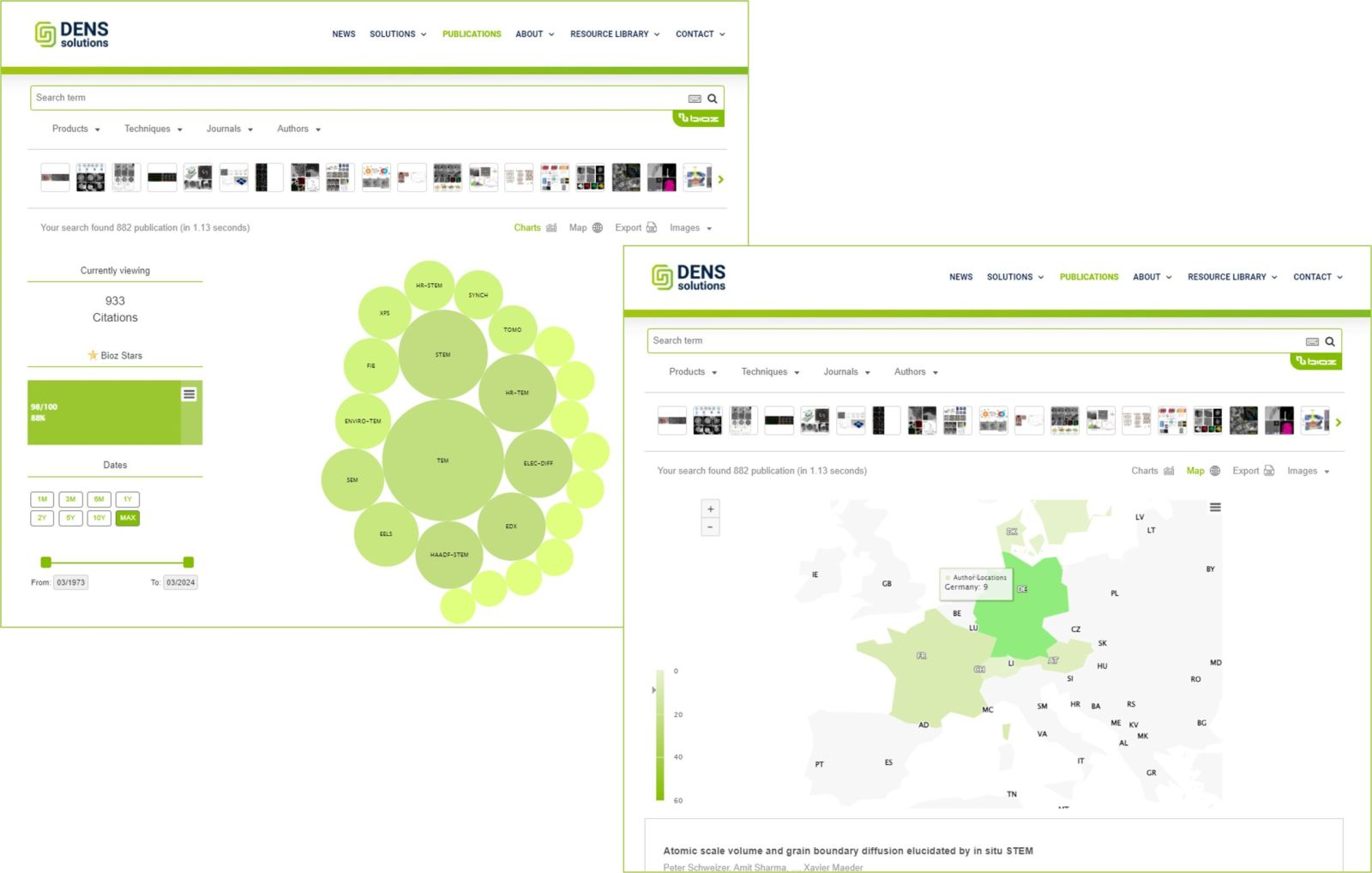 在官方网站 DENSsolutions - In situ Microscopy Innovative Solutions 的多个页面上集成了一种先进的文章搜索工具,该工具由先进的 AI 技术提供支持。这款创新工具由 Bioz 开发,可无缝扫描庞大的科学论文库,通过复杂的过滤功能为您提供对大量信息的访问。