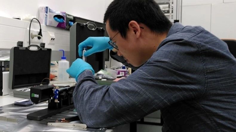 1埃尔朗根-纽伦堡大学的吴明健博士正在操作样品杆