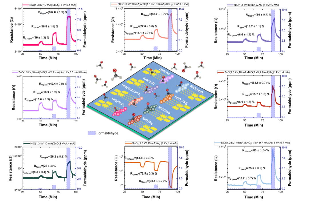 VSParticle 独特的干法纳米打印技术,沉积金属氧化物、二元或三元合金构成的纳米多孔感应层,显著提升了传感器的灵敏度与选择性。VSP 与 MCL 合作开展的Accsens 项目,被应用于制备用于甲醛检测的多阵列气体传感器。