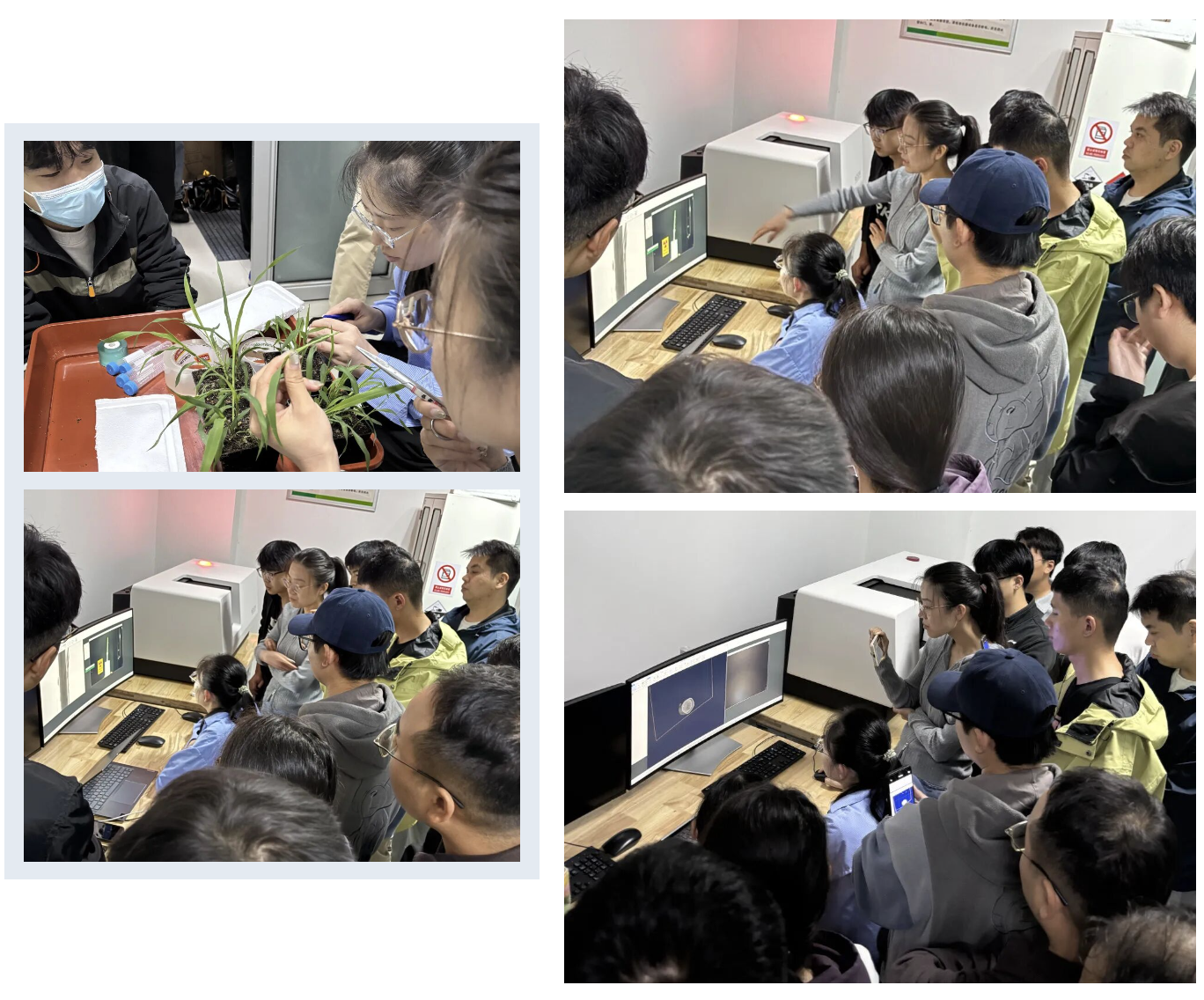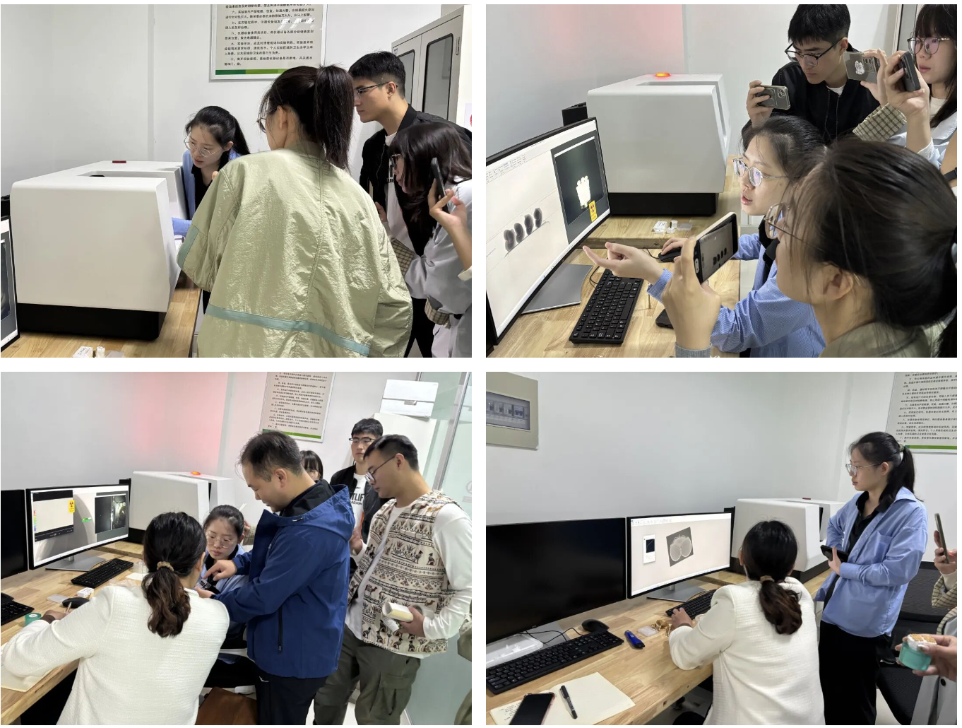 操作培训移至设备现场,复纳科技工程师对 30 余名教师与学生演示设备操作。培训以农学院小麦、芝麻茎秆、花生等科研样品为例,涵盖仪器开关机、参数优化、扫描模式选择、数据重建与后处理全流程。