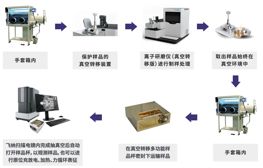 固态电池材料,如电解质,对大气中的氧气和水分非常敏感, 因此必须在隔绝空气的环境下进行制样处理和观察。